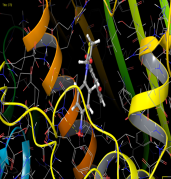 In silico methods in drug discovery can be used for the identification and quantification of the physico- chemical properties of the new drug candidate and also to analyse whether any of these properties of the new drug candidate and also to analyse whether any of these properties having significant effect on it’s biological activity. In silico designing of drug candidate will helps to identifying the possible target of the drug candidate and predicts it’s biological activity. The physic chemical properties of the drug candidate were discovered by using various computer software., in which the electronic,lipophylic and steraric parameters can be determined by using ACD Lab chemsketch.Molinspiration software will helps to determine the drug likeness by analyzing lipinsky rule of five. The approach used in PASS is based on the suggestion that the affinity = f (structure).