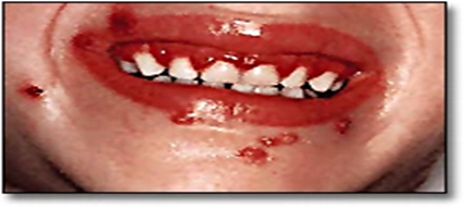 Primary Herpetic Gingivostomatitis: Primary herpetic gingivostomatitis is the most typical oral sign of a herpes simplex virus (HSV) infection. Over 90% of cases that happen above the waist are caused by HSV-1. Infection with HSV-2 happens below the waist. HSV-2 is frequently cultured from oral sores as a result of varying sexual practices. With a high incidence between two and three years, Usually, the age of occurrence falls between six months and five years. Prodromal symptoms include irritability, anorexia, fever, and nausea.(3)