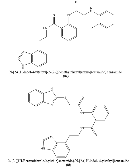 Reem I. Al-Wabli et, al., highlighted the growing worry about microbial infections and the increasing resistance to conventional antimicrobial medicines, highlighting the critical need for new compounds with superior pharmacological characteristics. In response, a novel series of conjugates of indole and triazole were developed and produced as possible antibacterial agents. These compounds antibacterial activity was assessed in vitro utilizing inhibition zone diameter (DIZ) and MIC testing against certain strains of microorganisms. With inhibition zones measuring 11 to 15 mm and MIC values of around 250 µg/mL, the study discovered that several compounds had moderate to outstanding antibacterial effectiveness against Gram-negative bacteria. Excellent results were obtained from the antifungal evaluation, particularly against Candida tropicalis. Having concentrations of the MIC lower than as 2 µg/mL, a number of drugs demonstrated notable activity. With the minimum inhibitory concentration of 2 µg/mL, compound 6f showed the best antifungal effectiveness against Candida albicans, suggesting that it might be used as a lead molecule for the development of antifungal drugs.(9).