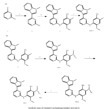 Phoebe F. et, al., created and synthesized fourteen new indole-pyrimidine hybrid compounds with the goal of targeting the anti-apoptotic protein Mcl-1, which is widely overexpressed in many malignancies. The synthesized compounds' structures were verified using spectroscopic methods. The (E)-configuration of the synthesized compounds was confirmed through a combination of computational and experimental methods, utilizing MM2 force field calculations alongside 2D NOESY NMR spectroscopy for structural validation. Initial biological evaluations indicated that several compounds—particularly 7d, 7e, 7i, and 7k—exhibited potent inhibitory activity against the anti-apoptotic protein Mcl-1, with Ki values falling within a narrow range of 11.19 to 15.21 nM. Additional profiling revealed that select molecules, such as 7i and 7d, also demonstrated dual inhibitory effects on Bcl-XL and Bcl-2 proteins, suggesting broader activity across the Bcl-2 family of apoptosis regulators. To further assess their anticancer potential, the most active compounds were subjected to in vitro cytotoxicity testing against a panel of human cancer cell lines, including PC-3 (prostate cancer), K-562 (chronic myelogenous leukemia), and MDA-MB-231 (triple-negative breast cancer). The results showed moderate to strong antiproliferative effects across these models. Computational docking studies provided further support by confirming stable binding interactions of these inhibitors within the Mcl-1 binding pocket. Additionally, in silico predictions of pharmacokinetic properties, including drug-likeness and pre-ADMET parameters, suggested that the compounds possess favorable profiles for further development as anticancer drug candidates.(23).