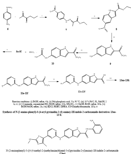 Because of its distinct structural and electrical characteristics, indole, a bicyclic aromatic heterocycle made up of a pyrrole moiety fused to a benzene ring, has become one of the most favored scaffolds in medicinal chemistry. It is a crucial framework in the identification and development of new therapeutic medicines due to its structural similarity to the important amino acid tryptophan and its occurrence in a wide variety of natural and synthesized bioactive molecules. Indole is found at the core of many pharmacologically significant molecules, including the neurotransmitter serotonin, the hormone melatonin, the anticancer drug vincristine, and the anti-inflammatory agent indomethacin.(1) Furthermore, approved drugs such as indomethacin (anti-inflammatory), Panobinostat (anticancer), and delavirdine (antiviral), along with endogenous biomolecules like serotonin and melatonin, underscore the broad biological relevance of this scaffold. Recent studies have highlighted the potential of indole derivatives in addressing multidrug resistance, modulating apoptotic and ferroptosis pathways, and inhibiting key enzymes such as CDK9, HDACs, PIM-1, and aromatase.(2) The indole nucleus is also known for its versatile pharmacological activities, including anticancer, antimicrobial, anti-inflammatory, antidiabetic, and neuroprotective effects. These compounds act on diverse molecular targets and signalling pathways, making them attractive candidates for multitargeted therapies. Since 2020, numerous novel indole-based compounds have demonstrated potent efficacy against cancer, bacterial, fungal, and viral pathogens, as well as metabolic disorders like diabetes and hypertension. Additionally, their ability to modulate inflammation, oxidative stress, and cellular signalling reinforces the ongoing significance of the indole scaffold in modern drug discovery and medicinal chemistry(3).