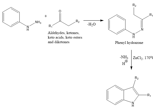 Developed by Emil Fischer in 1883, the Fischer Indole Synthesis is still the most popular and researched technique for creating indole rings, which are essential building blocks in medicines and natural goods. The main focus of the reaction is the cyclization of arylhydrazones, which are created when aromatic hydrazines condense with carbonyl substances (such ketones or aldehydes). Arylhydrazoles may be made from a variety of starting materials, including diketones, ketones, aldehydes, keto acids, and keto esters. The arylhydrazone undergoes a sequence of ring closure steps and rearrangements that result in an indole derivative when heated and in the presence of an acidic catalyst, such as a Lewis acid (such as ZnCl?, FeCl?, or PCl?) or a protic acid (such as HCl, H?SO?, or TsOH).