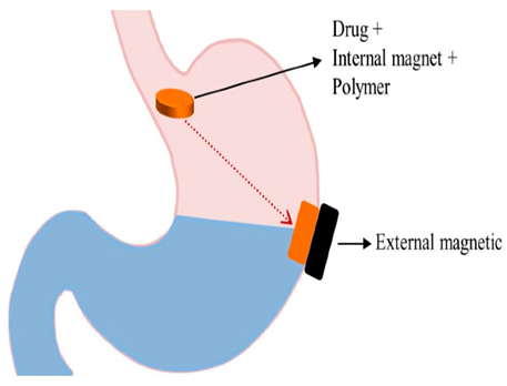 These systems are characterized by the presence of the drug, excipients, and a minute amount of an intramural magnet, with the availability of an extramural magnet placed on the stomach. This extramural magnet is capable of directing the location of the formula containing the internal magnet. Both the magnetic field strength of the extramural magnet and its position may influence the GRT [37]. If the position of the extramural magnet wasn’t accurately specified, the desired outcomes won’t be satisfied. Thus, the appropriate use of these systems will be doubtful.