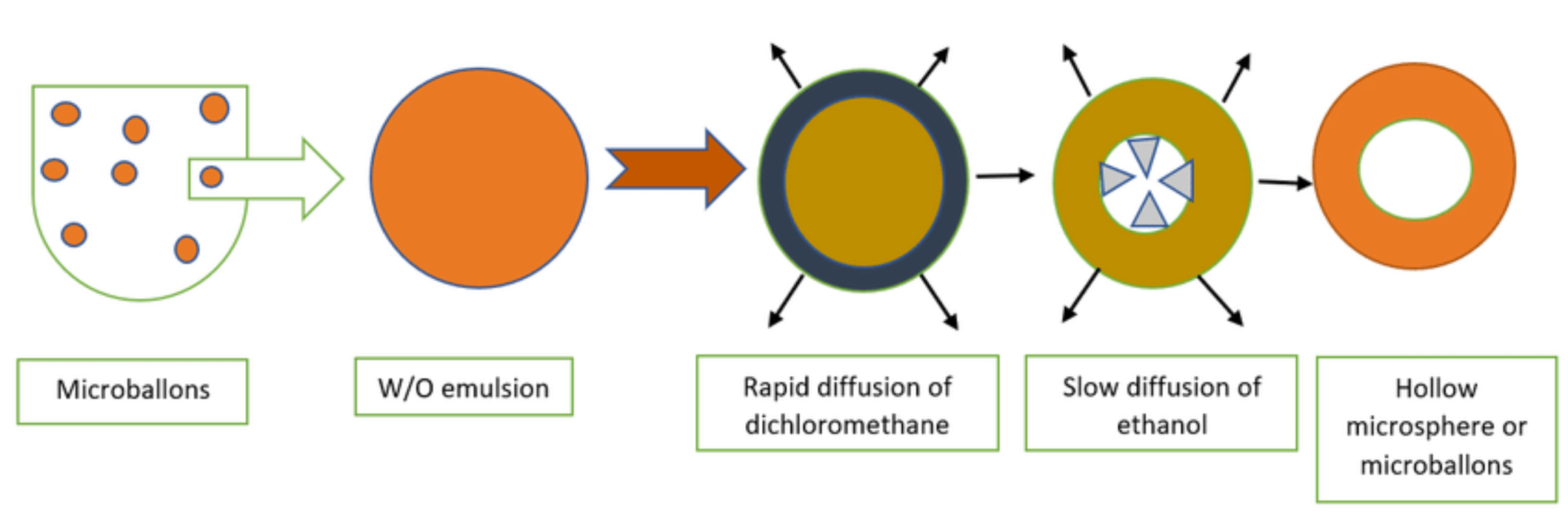 These are spherical particles with a hollow core, prepared using techniques like solvent diffusion or evaporation. Their low density allows them to float and release the drug gradually. Example: Ethyl cellulose-based micro-balloons for prolonged drug release [30].