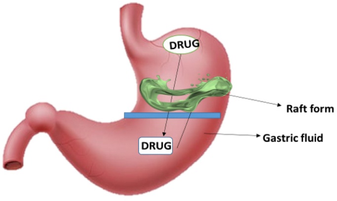 Raft forming systems have received much attention for the delivery of antacids and drug delivery for gastrointestinal infections and disorders. The raft forming system is the potential approach for heartburn and esophagitis. This system is suitable for acid soluble drugs that are poorly soluble or unstable in intestinal fluids [50].