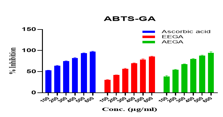 Figure 6: % Inhibition of ABTS by leaves extract of Gmelina arborea