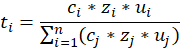 ti=ci*zi*uii=1n(cj*zj*uj)