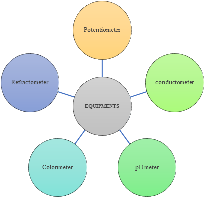In chemistry and biology labs, a conductometer is an electrochemical instrument that measures a solution's electrical conductivity to ascertain the concentration of ions or other charged particles.5 An electrolyte solution's electrical conductivity depends on a number of variables, such as the ions' kinds, concentrations, mobility, and temperature. The mobility of ions, which is mostly determined by their concentration, provides the basis for the electrical conductivity measurement principle. Ohm's Law, which asserts that the strength of the current (i) is directly proportional to the potential difference (V) and inversely proportional to the resistance (R), is followed by the electrical conductance of a solution. It is written as 6