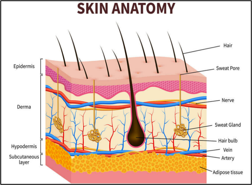 The skin is a complex organ with numerous histological layers. The epidermis, dermis, and hypodermis are the three main tissue layers that are typically used to describe it (Figure 1). The stratum corneum, the outermost layer of the epidermis that is exposed to the outside world, is one of the five anatomical layers that make up the epidermis under a microscope.
