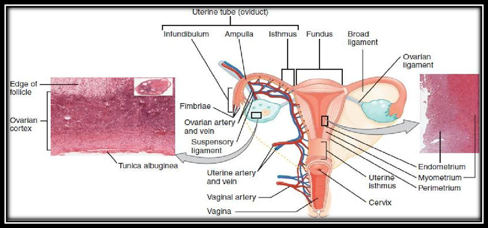 The ovary can move laterally or posteriorly to the uterus thanks to the infundibulopelvic ligaments, which suspend it. Along the infundibulopelvic ligaments, which connect to the pelvic sidewall, the ovarian vessels pass.[56,58,70] Twisting can be caused by a large leading point, like tumorous development, because adnexal tissue is not fixed. The utero- ovarian (UO) ligament connects the opposite side of the ovary to the uterus. Muscle and fibrous tissue make up the UO ligament. In addition to supporting and connecting the ovary to the uterus, the UO ligament also transports blood from the uterine artery to the ovary.