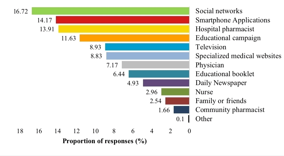 When asked if they wanted to get information about the correct way to dispose of medicines, 78.6% of people said "yes." Also, 70.2% of them thought it was their job to find other ways to get rid of medicines, which shows they are interested in learning. Working together between different government groups to run national education campaigns can help most people get the right information. This study found that the most popular ways people learn about medicine disposal are social media, smartphone apps, and hospital pharmacists. This makes sense because in one study, the Saudi Arabian population spends the most time online each day (5.1 hours) and has a higher percentage of people (91%) using social media compared to other countries.