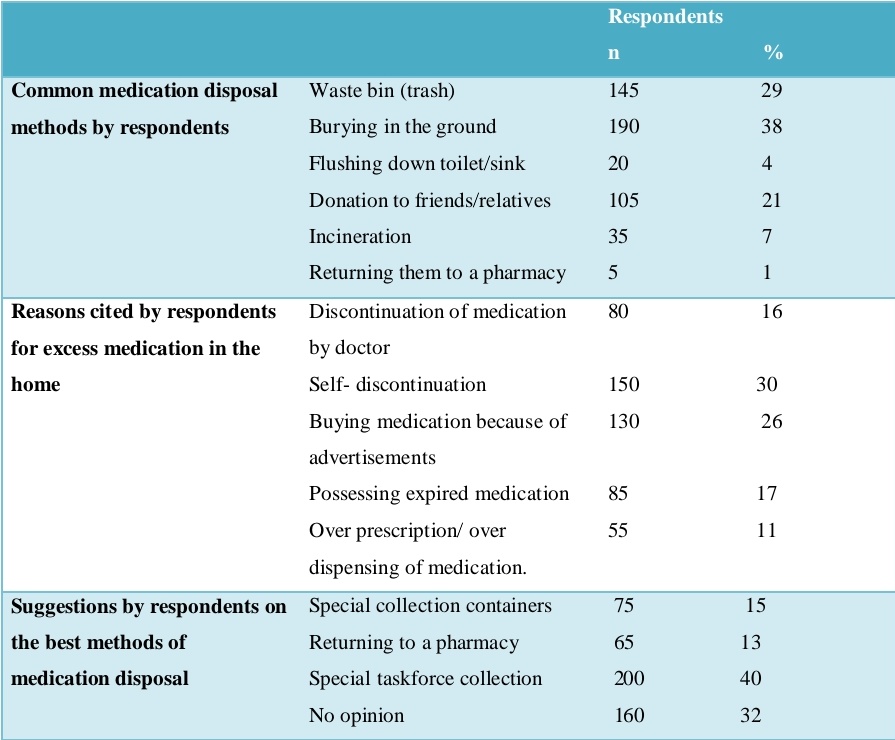 Customer drug disposal practices are variable and range among pharmacies with and with out dropboxes. Over a 3rd of clients in our pattern (41.7%) are storing unused medicinal drugs at home, with potential protection and environmental implications. The maximum commonplace disposal techniques pronounced through our participants had been throwing in the trash (27.five%), flushing (15.8%), and using a dropbox (eight.3%). those prices are lower than other studies investigating purchaser disposal of various drug types inside the united states of america, but that is possibly because of the high variety of customers surveyed that said storing drugs at domestic. 3 studies stated that 45– sixty two% of clients throw drugs in the trash and 18–31% flush capsules down the bathroom or sink, with only 12–17% by no means disposing or storing at domestic centered on medicinal drug garage, their end result concerning remedy disposal turned into comparable to our locating in which 87 % of participants of their examine disposed in their unused medicinal drug through family waste. moreover, this method has been identi-fied as the most common method of disposal in numerous other international locations which includes the