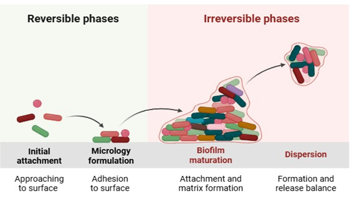 Fig 1: Mechanism of biofilm formation (created in https://www.biorender.com)