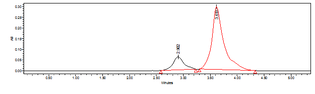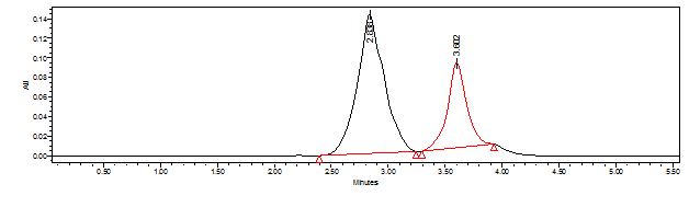 Retention time : 2.838 min for Pioglitazone and 3.602 min for Glimepiride.