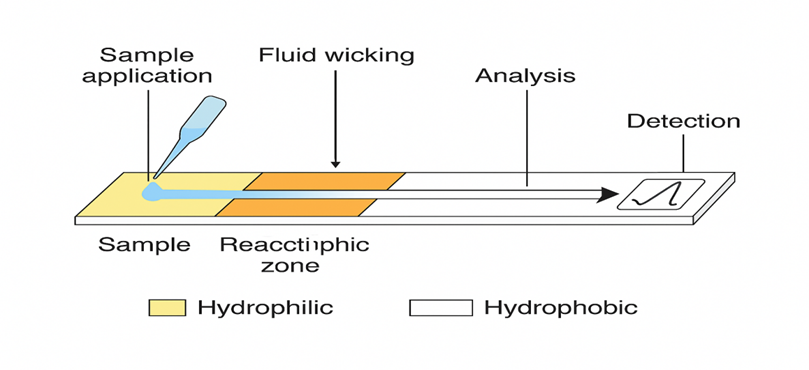 Figure.8. PAD: Sample flows via capillary action through hydrophilic zones for detection.