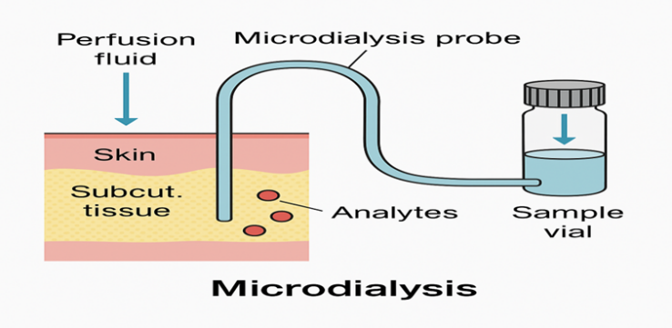 Figure.6. Microdialysis: Analyte diffusion into perfusion fluid via a semipermeable probe.