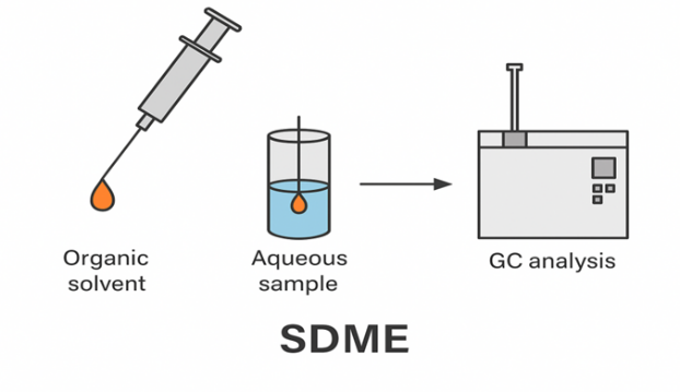 Figure.5. SDME: A single organic solvent droplet extracts analytes from an aqueous sample for GC analysis.