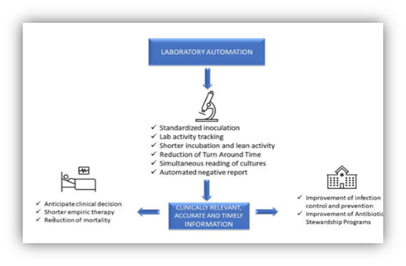 Figure: 9. Mencacci A, De Socio GV, Pirelli E, Bondi P, Cenci E. Laboratory automation, informatics, and artificial intelligence: present and future views in clinical microbiology. Effects of automation on laboratory, patient, and hospital administration. Microbiol Front Cell Infection. PMID: 37441239; PMCID: PMC10333692. doi: 10.3389/fcimb.2023.1188684. 2023 Jun 27;13:1188684