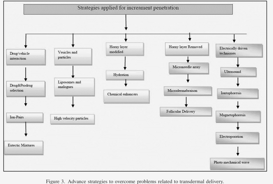 Three aspects can be taken into consideration when formulating an effective transdermal medication delivery strategy. There are two categories of elements that influence this: physicochemical factors and biological factors.