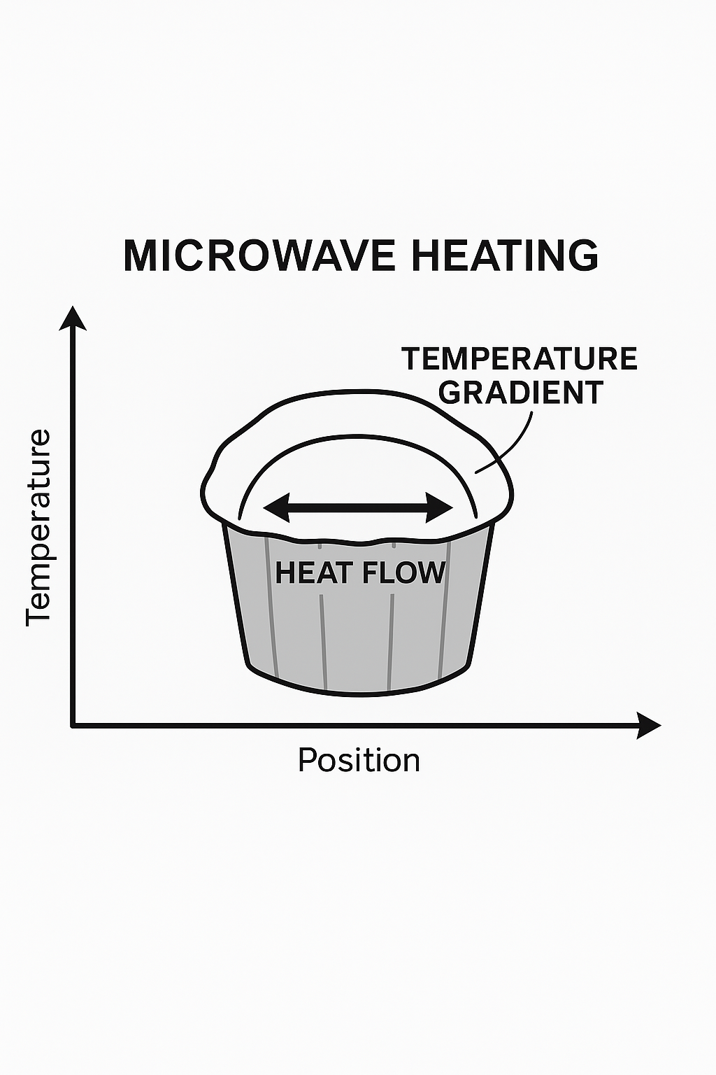 Figure 1 : Heat fluxes and temperature gradients produced in materials by microwave heating(22)