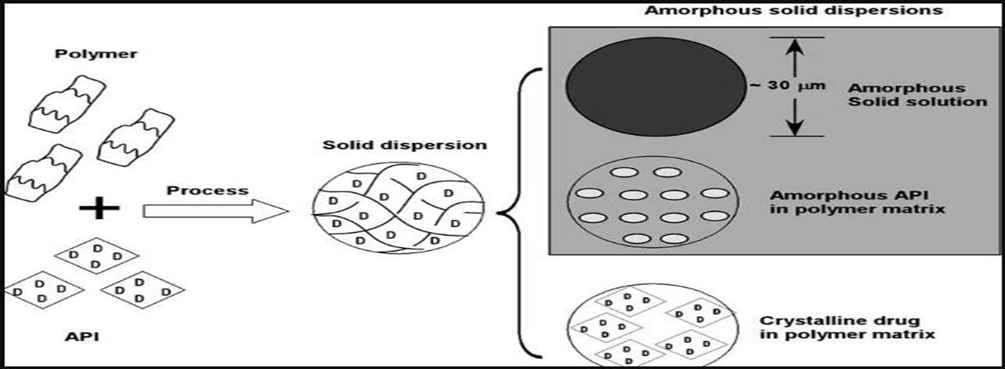 4.Solid Dispersion Extrusion: The weakly water-soluble drug's solubility can also be increased using this technique. The dispersion of one or more active substances in a solid-state, highly inert carrier while amorphous hydrophilic polymers are present is referred to as solid dispersion. To obtain the solid dispersion, the medication is dissolved in a suitable liquid solvent, and the resulting combination is then added to the previously dissolved polymeric solution that is accessible below 70°C without the liquid solvent being removed. Lastly, dyes are used to shape the solid dispersions into films. [ 6]