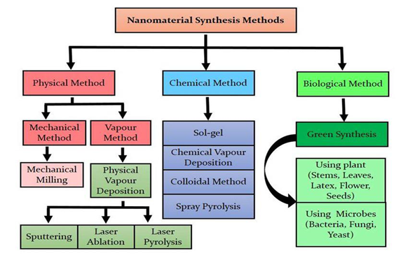 Over the last century nanotechnology branch is flourishing to a great extent. And today many types of research are directly or indirectly related to the nanotechnology. Nanotechnology can be stated as the developing, synthesizing, characterizing and application of materials and devices by modifying their size and shape in nanoscale” In each and every stream the prefix ‘‘nano” is using as a keyword even in advertising the products also. Actually, the word ‘‘nano” is derived from the Greek word nanos or Latin word nanus means which ‘‘dwarf”. It is the combination of physics, chemistry, material science, solid state, and biosciences. So, profound knowledge in one field will not be sufficient, the combined knowledge of physics, chemistry, material science, solid state, and biosciences is required. The applications of Nanotechnology nanotechnology is an emerging field of research in biomedical applications. Nanoparticles are part of the technology as a molecular probe for detecting and curing diseases. The nanoparticles are very small and are 10−9 meters in size. It has unique physical and chemical properties when compared to bulk materials. The broad classification of nanoparticle synthesis is used of top-down and bottom-up techniques. The top-down technique involves physical participation approaches such as mechanical machining, physical vapor deposition (PVD), lithography, and pyrolysis through thermal evaporation pyrolysis. Bottom-up methods consist of chemical and biological approaches. Sol-gel, chemical vapor deposition (CVD), chemical co-precipitation, micro-emulsions, hydrothermal method, nonchemical, and microwave methods are involved in the bottom-up chemical approaches. Furthermore, other methods of synthesizing nanoparticles are through plant extracts, enzymes, agricultural waste, microorganisms, and actinomycetes.