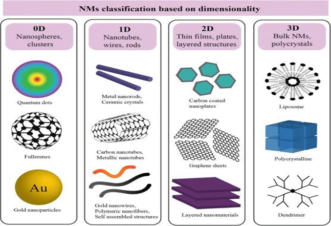 Nanoparticles (NPs) are the fundamental component of nanotechnology. Nanoparticles are the particulate matters with at carbon, metal, metal oxides or organic matter. On the basis of dimensions NPs can be classified into (Khan I., Khalid S., & Khan I., 2019; Kim K. S., Tiwari J. N. & Tiwari R. N, 2012):