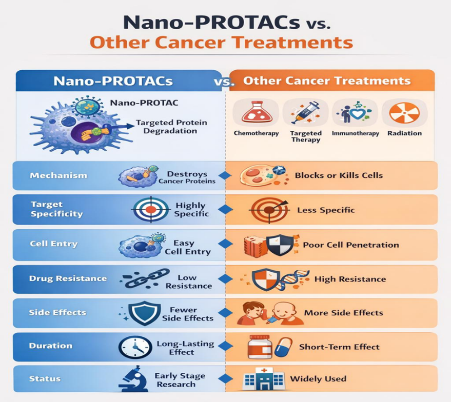 Combination Therapy: Nano platforms offer space to carry multiple drugs (e.g., PROTACs + immunotherapy), creating synergistic treatments in one delivery system.
