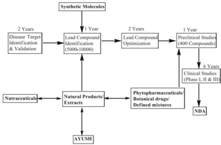 Although the enormous contribution of natural products in drug discovery. The late 1980 to 1990 there was a diminished interested in natural products in pharmaceutical industries still the industries facing lot of problems with various challenges & new paradigms. They require expert & clinicians to face these challenges for new drug. On the way of being a successful drug, natural products also form the basis of several traditional medicine system like Ayurveda, Siddha, Unani etc.