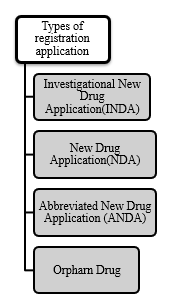 Various types of registration application are required depending on the stage of drug development and intended use.