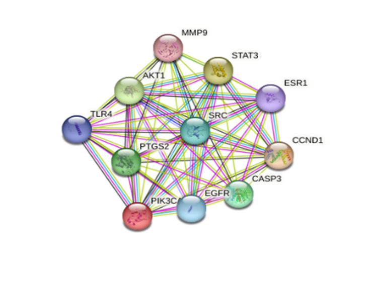 Prominent hub genes that frequently emerge include AKT1, SRC, STAT3, EGFR, PTGS2, MMP9, TLR4, CCND1, ESR1, CASP3, and PIK3CA. These genes are heavily implicated in key processes such as cell survival (AKT1, STAT3), inflammation (PTGS2, TLR4), extracellular matrix remodeling (MMP9), and apoptosis (CASP3), which are central to myocardial ischemic injury and post-infarction remodeling. .[26-30]