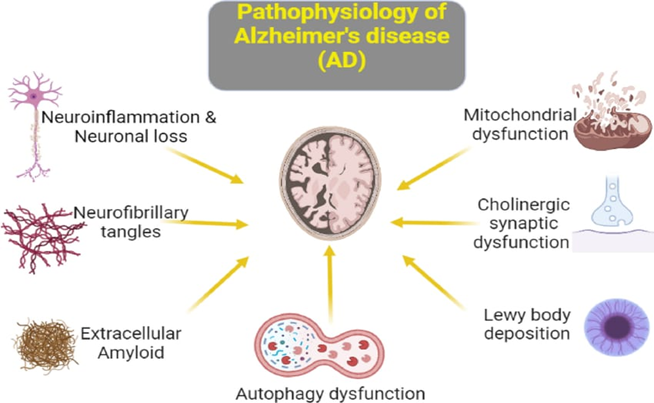 Alzheimer’s disease (AD) is a chronic, progressive neurodegenerative condition that primarily affects the hippocampus and cerebral cortex, resulting in progressive cognitive decline, memory impairment, and behavioral alterations. The pathogenesis of AD involves several interconnected molecular pathways that ultimately cause neuronal loss and synaptic dysfunction.