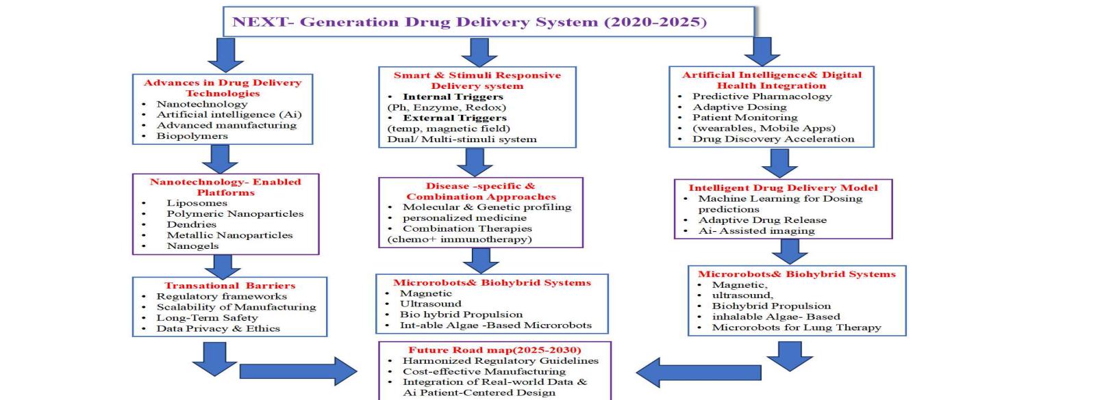 Drug delivery has evolved beyond conventional formulations to embrace intelligent platforms that combine engineering precision with clinical applicability. In the past five years, major strides in nanotechnology, biomaterials, and AI have enabled therapies that are not only more effective but also increasingly personalized. Personalization in drug delivery refers to tailoring treatment according to patient-specific factors such as genetic background, disease phenotype, and metabolic profile. At the same time, translational perspectives—including regulatory readiness, scalable production, and safety validation—determine whether laboratory innovations can reach real-world practice. Next-generation drug delivery systems (DDS) have rapidly progressed in the past five years, moving beyond conventional formulations toward intelligent, patient-tailored platforms. Advances in nanotechnology, biomaterials, artificial intelligence (AI), and 3D/4D fabrication are reshaping the therapeutic landscape by enabling precision dosing, site-specific targeting, and adaptive release profiles. Personalization in DDS integrates molecular diagnostics, genetic profiling, and digital health data to optimize treatment for individual patients, while translational perspectives focus on regulatory readiness, scalable manufacturing, safety validation, and equitable access.