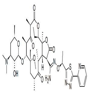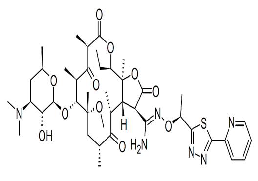 Structure: It is a 16-membered lactone-ketolide featuring a 2-pyridine-1,3,4-thiadiazole side chain connected via a four-atom spacer.