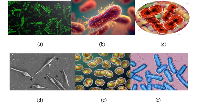 Figure 2: (a) Streptococcus pneumoniae (b) Haemophilus influenza (c) Moraxella catarrhalis (d) Mycoplasma pneumoniae (e) Chlamydophila pneumoniae (f) Legionella pneumophila