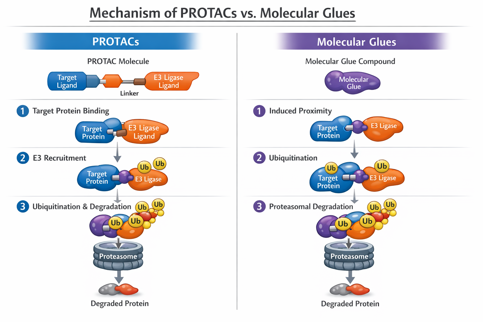 Figure 2. Mechanism of PROTACs vs. Molecular Glues