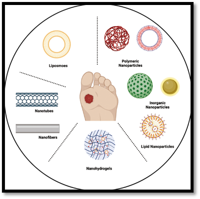 Figure no. 9: Various types of nanomaterials used as advanced delivery systems for the treatment and healing of chronic wounds.