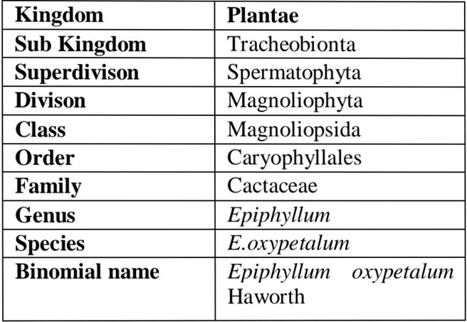 Table 1: Taxonomy of Epiphyllum Oxypetalum