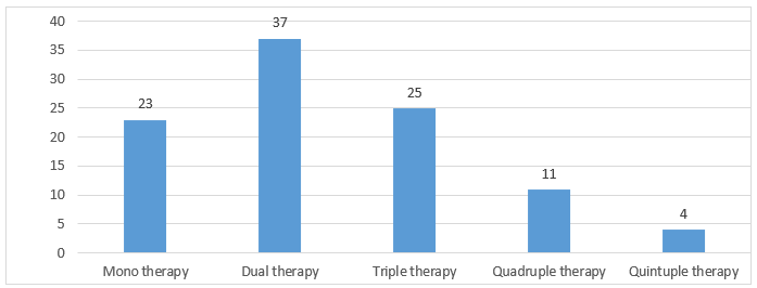 All the above quintuple combination of drugs hold equivalent percentage. this can be attributed to the difference in the individual subject conditions i.e their disease stage, its progression, complications, comorbid conditions etc.