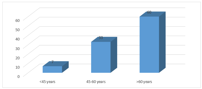 Our study results shows that there was a gradual increase in the prevelance of hypertension with the age group of greater than 45 years. The mean age of hypertension observed in this study was 62.81 years.