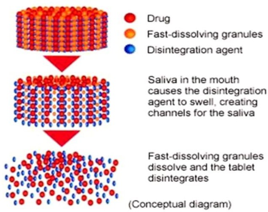 The quick entry of water into the tablet matrix, which causes rapid disintegration, is responsible for the FDTs' speedy dissolving ability.