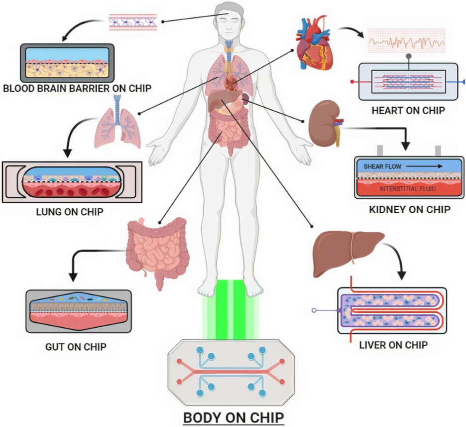 One important direction in the evolution of organ-on-chip technology is the development of multi-organ or body-on-chip systems. These platforms integrate multiple organ models within a single microfluidic network, enabling researchers to simulate interactions between organs and study systemic physiological responses. Such integrated systems may provide valuable insights into drug metabolism, distribution and toxicity across different tissues, thereby improving the predictive accuracy of preclinical drug evaluation.[13,26]
