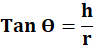 where h and r stand for the cone's height and radius, respectively. An angle of repose of less than thirty degrees indicates that the material is flowing freely.