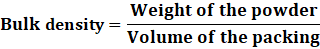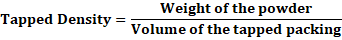 Tapped Density=Weight of the powderVolume of the tapped packing