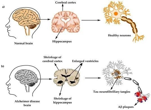 Figure No. 1 Brain structure a) healthy brain and b) Alzheimer’s Disease