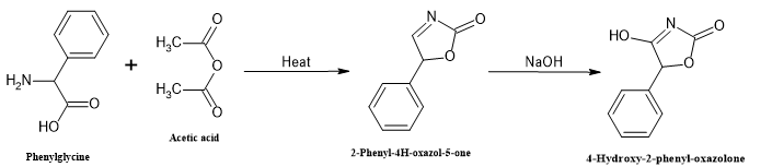 Heat 1.51 g phenylglycine with 10 mL acetic anhydride at 100°C. After cooling, add 1M NaOH dropwise with stirring. Filter the precipitate and recrystallize from water-ethanol (1:1 mixture)62.