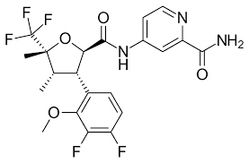 The structure of Suzetrigine is a small-molecule NaV1.8 sodium channel inhibitor and it can be described as follows: