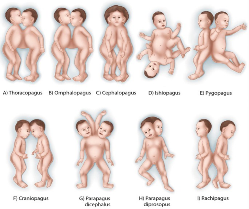 The specific timing of developmental arrest influences the anatomical presentation. For example, early incomplete division may result in thoracopagus or omphalopagus twins, while later disruptions may produce pygopagus or craniopagus forms. [12,13] The degree of vascular connection also varies widely. Some pairs share only superficial tissue bridges, while others demonstrate common livers, gastrointestinal tracts, or even a single functional heart, significantly complicating survival and surgical separation.[14]
