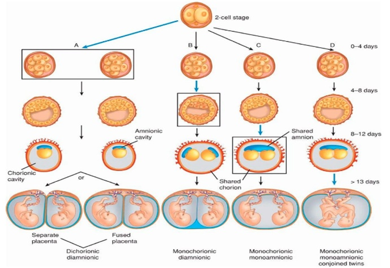Fig.02 embryological stages showing incomplete division leading to conjoined twins
