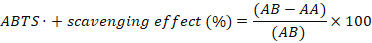 ABTS·+ scavenging effect (%)=(AB-AA)(AB) ×100